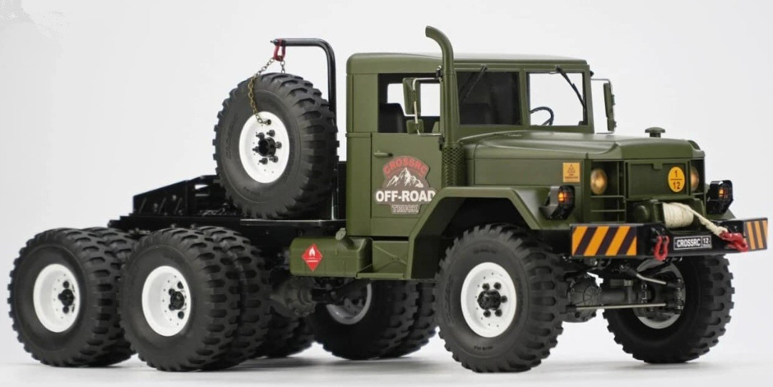 Ein äußerst detaillierter und hochwertiger Modellbausatz für einen 1:12 Truck im CC8 8x8-Design. Als Vorlage dient ein Lkw aus den 1960er Jahren. Dieser Bausatz ist ein weiteres Meisterwerk der CROSS-RC Truck Serie im Maßstab 1:12. Mit den beeindruckenden Maßen von 985 mm x 263 mm x 278 mm (L x B x H) ist das Modell besonders auffällig. Die Reifen haben einen Durchmesser von 135 mm und eine Breite von 48 mm, montiert auf 2,2"-Stahlfelgen. Das Fahrerhaus ist extrem detailliert und lässt sich mit einer ABS-Inneneinrichtung und funktionierenden Türen sowie Luken klappen.